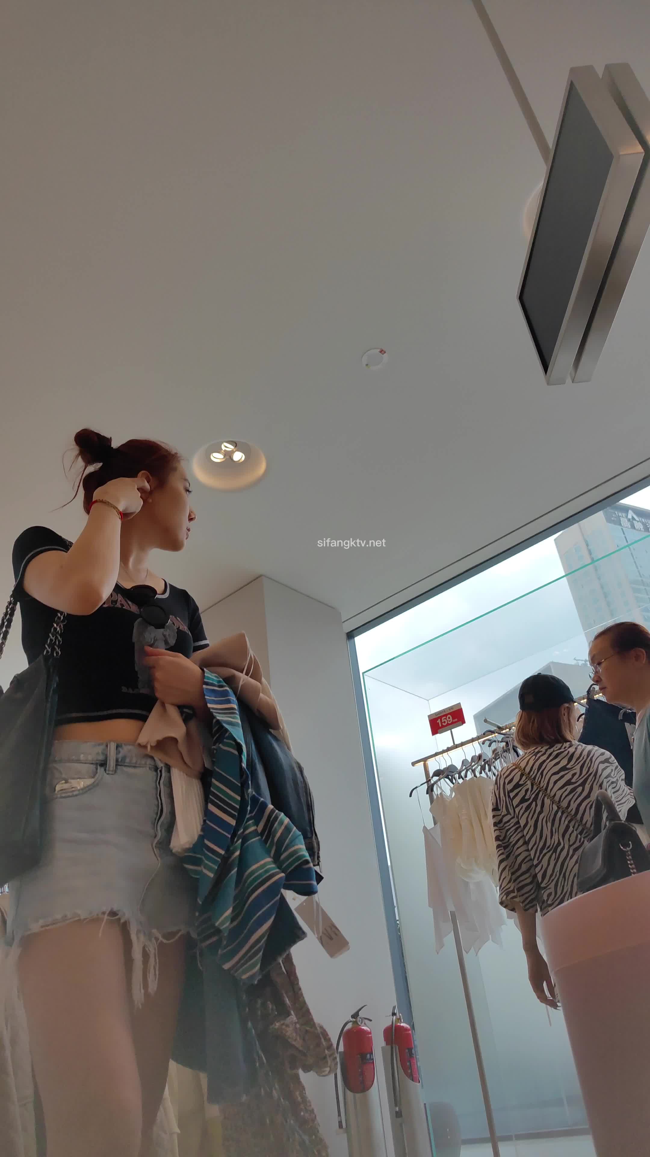 【kxcd】083蓝色牛仔裙长靴小姐姐黑色白点内内